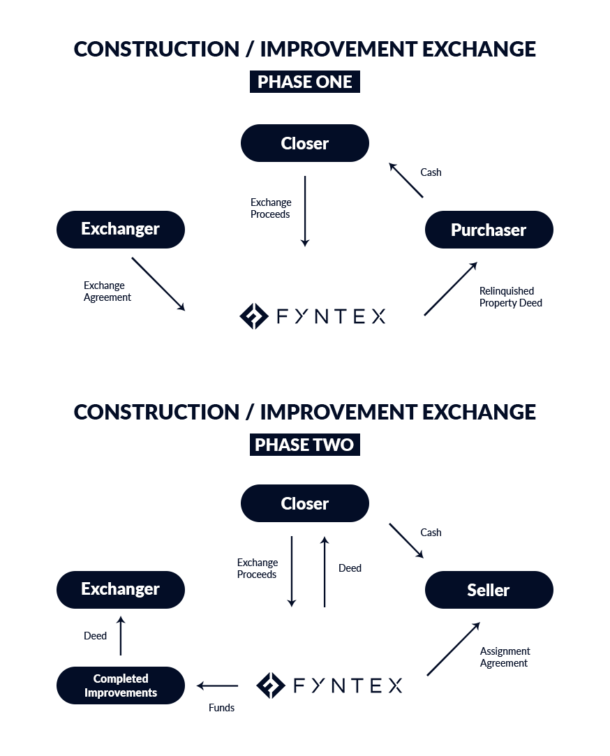 In some cases, the replacement property requires new construction or significant improvements to be completed in order to make it viable for the specific purpose the Exchanger has intended for the property. Such construction or improvements can be accomplished as part of the exchange process, with payments to contractors and other suppliers being made by the facilitator out of funds held in a trust account. Therefore, if the replacement property is of lesser value than the relinquished property at the time of the original transaction, the improvement or construction costs can bring the value of the replacement property up to an exchange level or value which would allow the transaction to remain completely tax deferred.